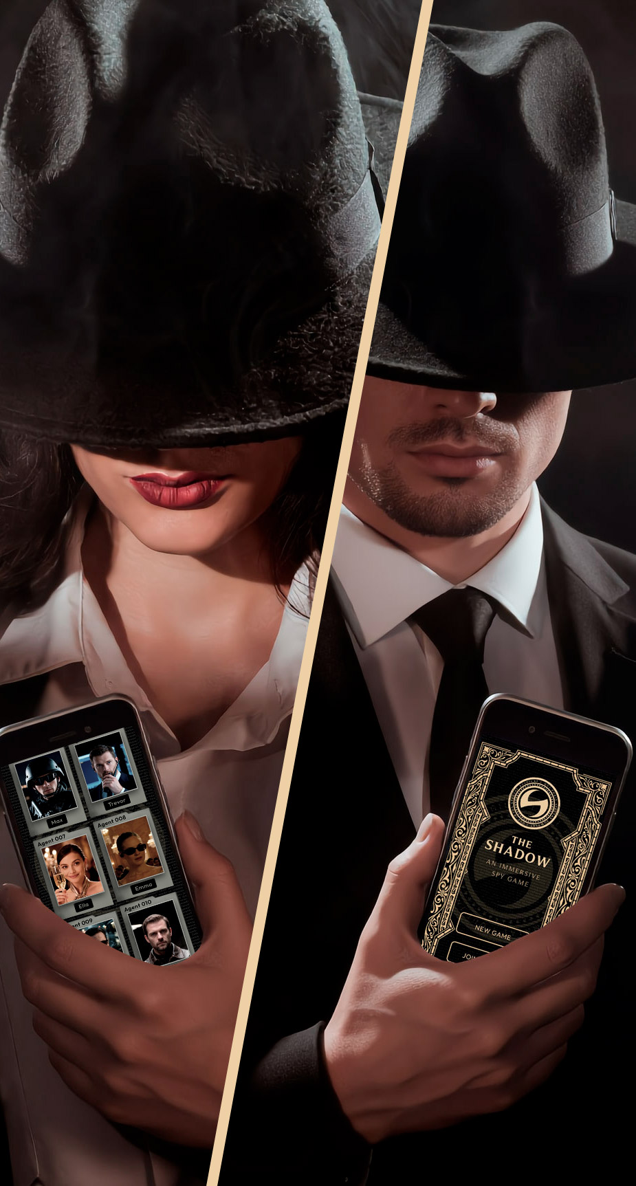 The Shadow is a phone-activated immersive spy social game where players receive private instructions on their phones and try to uncover the Double Agents in the room.